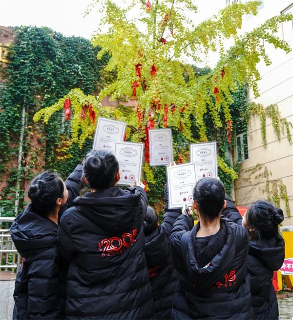 将手中的祈愿卡一齐抛向银杏树
